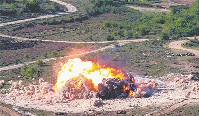 完成首輪打擊,戰(zhàn)機(jī)迅速躍升,大機(jī)動脫離直插云霄。數(shù)分鐘后,戰(zhàn)機(jī)再次進(jìn)入攻擊航線。到達(dá)最佳攻擊陣位,飛行員果斷按下發(fā)射按鈕,兩枚炸彈脫離戰(zhàn)機(jī)后落向靶標(biāo),地面瞬間騰起一團(tuán)火焰和氣浪。