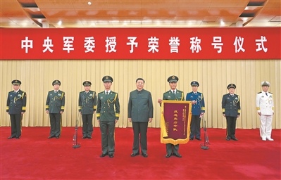 本報(bào)北京7月5日電 記者歐燦報(bào)道:中央軍委授予榮譽(yù)稱號儀式5日在京隆重舉行。中央軍委主席習(xí)近平向獲得榮譽(yù)稱號的單位頒授獎(jiǎng)旗。