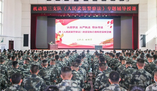 ——修訂出臺人民武裝警察法,構建武裝警察政策制度體系基本框架。人民武裝警察法是新時代武警部隊履行職責使命的基本法律,為構建武裝警察政策制度體系確立基本依據(jù)。新的武警法明確武警部隊建設發(fā)展的指導思想,調(diào)整武警部隊領導指揮體制,拓展武警部隊職能使命,構建新型武警部隊組織指揮制度,為建設強大的現(xiàn)代化武裝警察部隊、維護國家安全和社會穩(wěn)定提供了堅強法律保障。