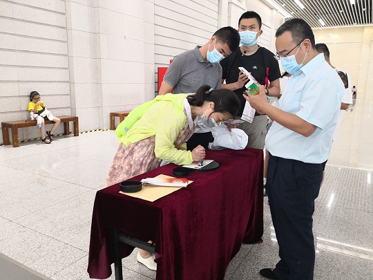 圖為購買主題郵局開通封的參觀者加蓋紀念郵戳。本報見習記者韓瀟 攝