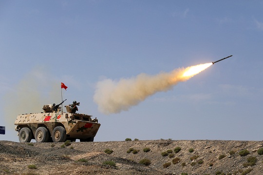 圖為中國參賽隊員在戰(zhàn)車上發(fā)射便攜式防空導(dǎo)彈。張嘉成 攝
