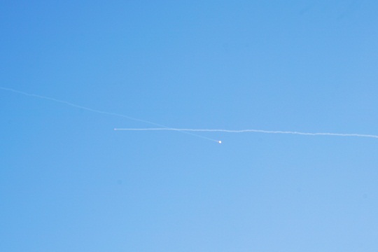 圖為導(dǎo)彈與高速靶彈空中交會(huì)。郭中正 攝