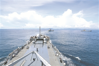 圖①:9月3日,海軍某登陸艦大隊(duì)開展編隊(duì)訓(xùn)練。李樹起攝