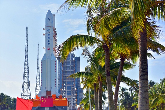 圖為長征五號和嫦娥五號組合體進行轉(zhuǎn)運。
