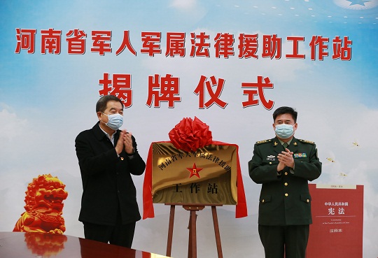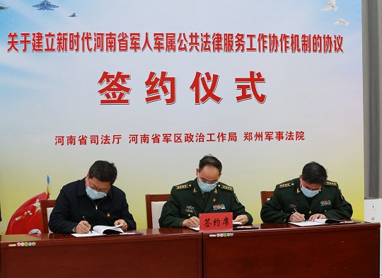 啟動儀式上,河南省司法廳、河南省軍區(qū)政治工作局、解放軍鄭州軍事法院共同簽署了《關(guān)于建立新時代河南省軍人軍屬公共法律服務(wù)工作協(xié)作機制的協(xié)議》,并為“河南省軍人軍屬法律援助工作站”揭牌。
