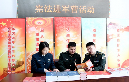 在今年的“憲法宣傳周”活動(dòng)期間,全軍部隊(duì)開(kāi)展了形式多樣的宣傳活動(dòng),通過(guò)送法進(jìn)軍營(yíng)、組建普法宣講團(tuán)、提供法律援助等形式,在軍營(yíng)掀起崇尚法治、推進(jìn)法治建設(shè)的熱潮。