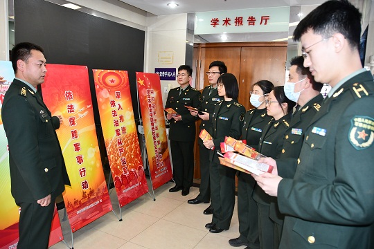 圖⑥ 武警兵團(tuán)總隊(duì)執(zhí)勤第五支隊(duì)開(kāi)展“憲法宣傳周、送法進(jìn)軍營(yíng)”普法宣傳活動(dòng)。劉金鑫 攝