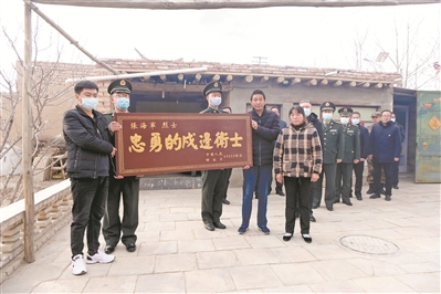 圖為軍地人員護(hù)送烈士牌匾來(lái)到烈士家中。