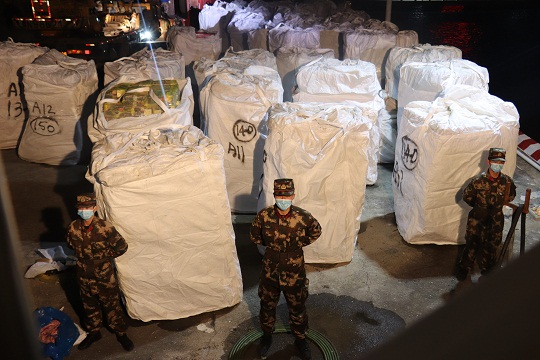 近日,在廣東海警局統(tǒng)一部署下,汕尾、珠海、揭陽三地海警局緊密協(xié)同,成功查獲一起特大走私凍品案件,抓獲涉案人員5名,查扣涉案船舶1艘、走私凍品413噸,案值逾2000萬元。該案是廣東海警局2022年開年以來首次指揮多地海警機(jī)構(gòu)聯(lián)合查緝走私行為的重大戰(zhàn)果。