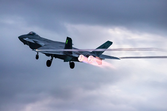寒冬,空軍某機(jī)場。在灑滿朝霞的跑道上,李凌駕駛國產(chǎn)最新型戰(zhàn)機(jī)呼嘯升空,飛向指定空域。
