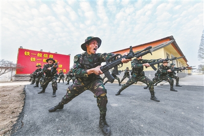 陸軍第71集團軍某旅“紅三連”官兵發(fā)揚“草地黨支部”的精神基因,賡續(xù)傳承紅軍血脈。圖為“紅三連”官兵正在進行刺殺訓練。潘成杰 攝
