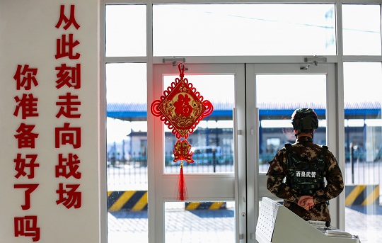 圖為武警執(zhí)勤官兵在某執(zhí)勤卡點(diǎn)定點(diǎn)執(zhí)勤。侯崇慧 攝