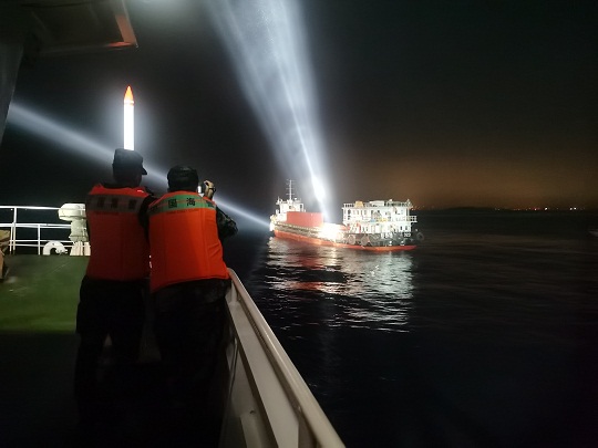 圖為執(zhí)法艇正在接近嫌疑船只。廣東海警局供圖