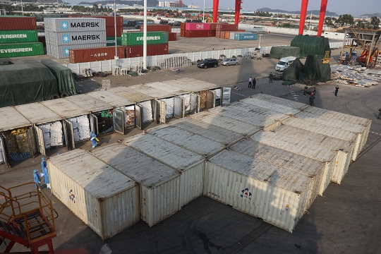 圖為執(zhí)法員打開貨柜進(jìn)行檢查。廣東海警局供圖