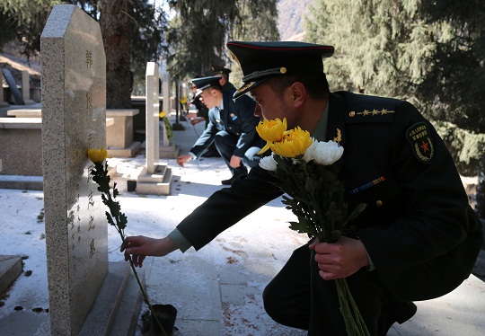 活動(dòng)中,檢察官們向英雄烈士敬獻(xiàn)鮮花,描紅碑文,清掃墓地周邊落葉雜草。烏魯木齊軍事檢察院檢察長(zhǎng)馬小龍說:“英雄先輩們肩負(fù)祖國和人民重托,不畏犧牲、浴血奮斗。作為黨員、軍事檢察官,我們有責(zé)任讓英烈事跡和精神為后人所銘記,也更有義務(wù)發(fā)揮公益訴訟職能,讓英雄永遠(yuǎn)不被遺忘”。