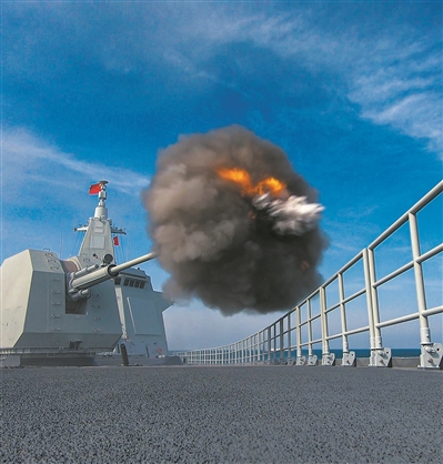 “前方有‘?dāng)场灮顒?dòng)!”航渡途中,戰(zhàn)斗警報(bào)驟然響起。編隊(duì)立即變換隊(duì)形,艦艇快速占領(lǐng)有利陣位,協(xié)同配合進(jìn)行射擊。戰(zhàn)炮呼嘯,靶標(biāo)被擊中后消失在茫茫大海中。