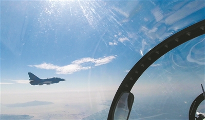 戰(zhàn)機掠海,進行超低空突防。飛抵目標空域后,飛行員迅速搜索觀察并鎖定目標,隨即建立最佳攻擊航線。