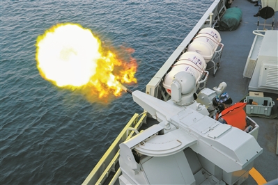 上圖:戰(zhàn)艦蹈海。下圖:炮火怒吼。張震 攝影報(bào)道