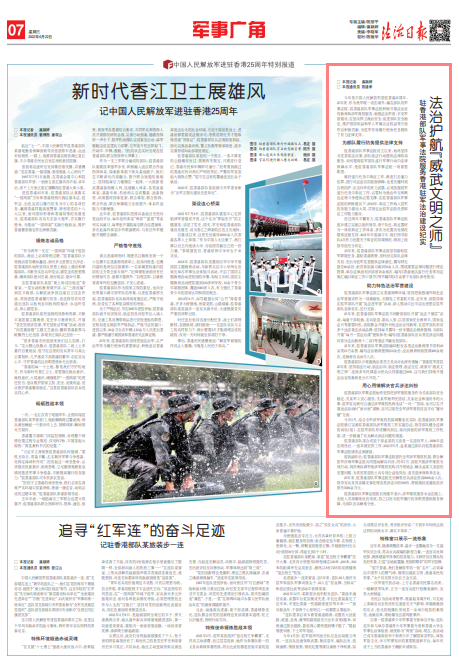 今年是中國人民解放軍進駐香港25周年。25年來,作為我軍唯一設(shè)在境外、編在部隊的軍事法院,駐香港部隊軍事法院積極開展法治宣傳教育和涉軍維權(quán)服務(wù),助推法治軍營、平安軍營建設(shè),在堅決捍衛(wèi)政治安全、促進部隊安全穩(wěn)定、維護國防利益和軍人軍屬合法權(quán)益等方面作出積極貢獻,為駐軍有效履行使命任務(wù)提供了有力法律支持。