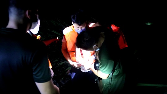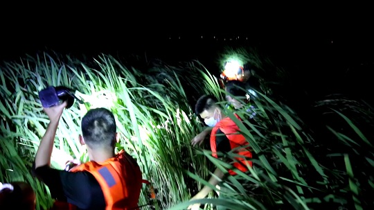 根據(jù)受困人員提供的信息,執(zhí)法員初步判斷兩人位于蘆葦蕩深處,但現(xiàn)場密集的蘆葦叢導(dǎo)致執(zhí)法員視野受阻,無法確定具體位置??紤]到海水仍在暴漲,群眾隨時(shí)可能遇險(xiǎn)的緊急情況,經(jīng)過短暫的現(xiàn)場研判,指揮員親自率隊(duì)克服風(fēng)聲嘈雜、路況惡劣等諸多不利因素深入搜尋,搜救小分隊(duì)一邊打著遠(yuǎn)光燈試圖給受困人員指明方向的同時(shí),一邊在黑夜中喊話進(jìn)行搜索。經(jīng)過20分鐘的不懈努力和細(xì)心觀察,最終在3公里外發(fā)現(xiàn)被困海中的游客,并于20時(shí)20分左右成功將2人安全救回。