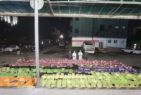 針對(duì)臺(tái)風(fēng)“暹芭”剛過(guò)境,走私分子可能會(huì)心存僥幸利用較低潮位從事走私活動(dòng)的現(xiàn)實(shí)情況,該局科學(xué)研判,嚴(yán)密部署執(zhí)法力量加強(qiáng)轄區(qū)管控。7月6日晚23時(shí)許,在轄區(qū)海域蹲守的海警執(zhí)法員發(fā)現(xiàn)有不明“大飛”蹤跡,經(jīng)過(guò)圍追堵截最終將涉嫌走私“大飛”一舉抓獲,現(xiàn)場(chǎng)抓獲涉案嫌疑人兩名,查獲涉嫌走私香煙一批,該船后置5臺(tái)“雅馬哈”機(jī)頭,總馬力超1000匹。經(jīng)合浦縣疾控中心對(duì)上述涉案物品及人員進(jìn)行消殺、核酸檢測(cè),結(jié)果均為陰性。經(jīng)清點(diǎn),查獲美國(guó)“百樂(lè)”牌香煙約400件,共計(jì)1.9萬(wàn)余條,總案值約500萬(wàn)元。目前,該案件正在進(jìn)一步深挖擴(kuò)線中。