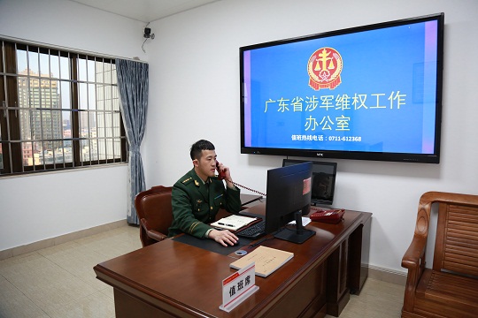 圖為廣東省涉軍維權(quán)工作辦公室開通熱線電話,維權(quán)服務(wù)人員接聽駐粵部隊(duì)官兵電話咨詢。程勇 劉文敬 攝