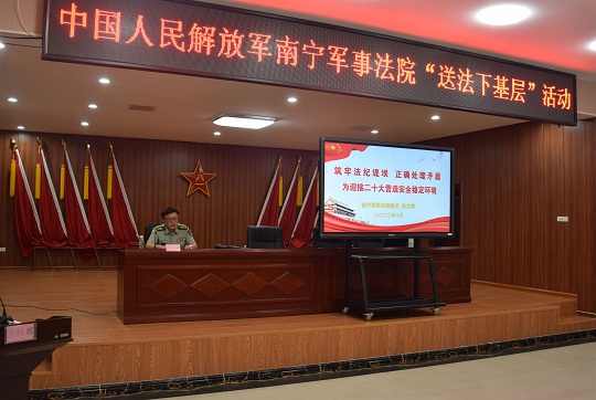 圖為南寧軍事法院開展送法進(jìn)軍營(yíng)授課。