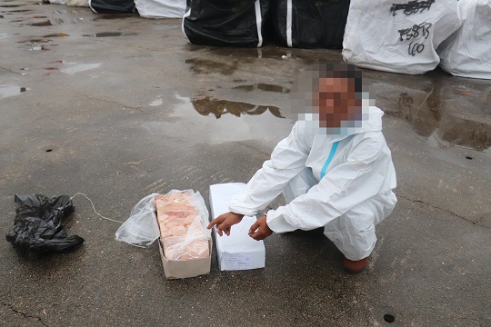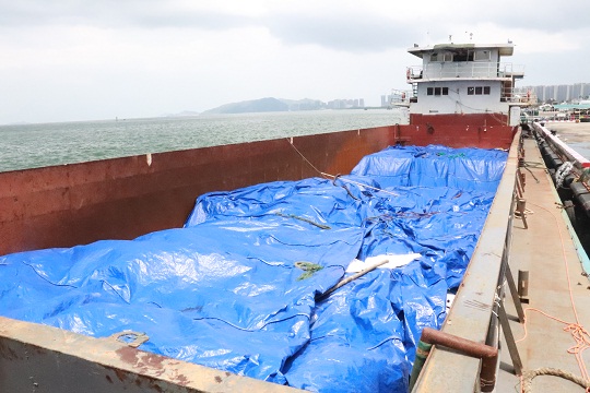 經(jīng)過(guò)2個(gè)多小時(shí)的搜索,海警巡邏艦成功在目標(biāo)海域發(fā)現(xiàn)嫌疑船只,海警執(zhí)法員隨即依法進(jìn)行登船檢查。經(jīng)查,該嫌疑船船倉(cāng)內(nèi)裝有大量黑色及白色塑料袋,袋內(nèi)裝有疑似來(lái)自境外的凍豬耳、凍豬肚等凍品約190噸,現(xiàn)場(chǎng)抓獲3名嫌疑人,且隨船未能找到該批凍品的任何合法來(lái)源證明。