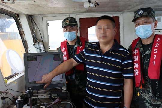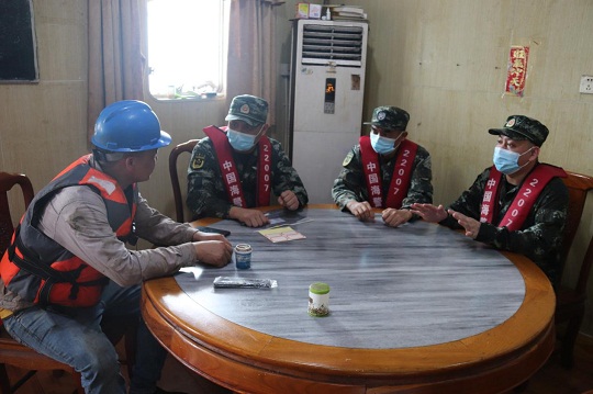 圖為對(duì)船舶負(fù)責(zé)人進(jìn)行現(xiàn)場(chǎng)詢問。