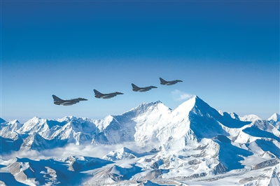 圖為戰(zhàn)機(jī)編隊(duì)飛越雪山。邱文韜 攝