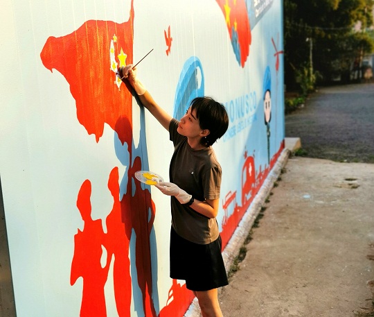 圖為維和醫(yī)療分隊(duì)隊(duì)員涂鴉文化墻。