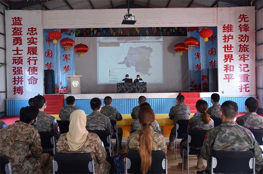 圖為維和醫(yī)療分隊(duì)隊(duì)員參加聯(lián)剛團(tuán)法律法規(guī)培訓(xùn)。