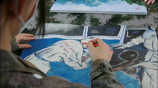 圖為維和醫(yī)療分隊(duì)隊(duì)員創(chuàng)作主題繪畫(huà)。