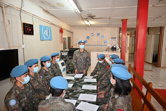 圖為維和醫(yī)療分隊(duì)隊(duì)員組織學(xué)習(xí)相關(guān)法律法規(guī)。