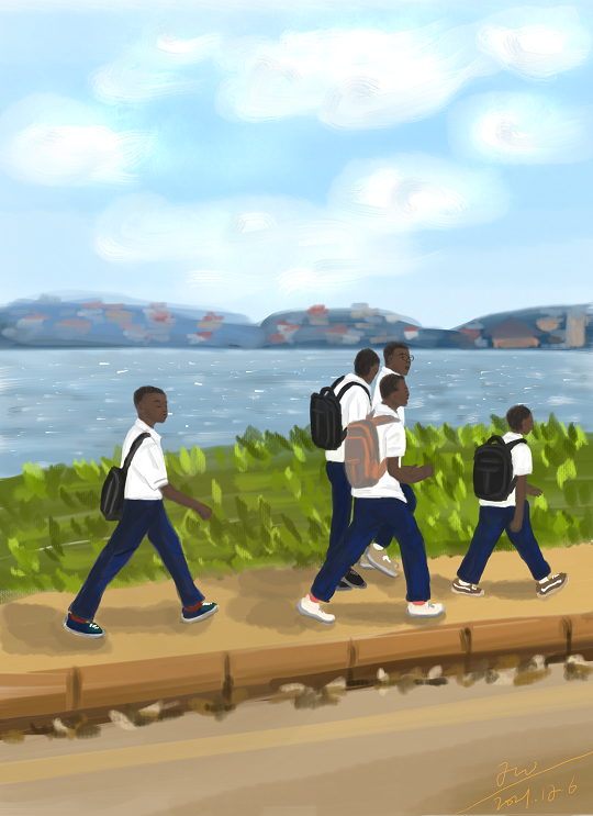 圖為維和醫(yī)療分隊(duì)隊(duì)員創(chuàng)作維和主題繪畫(huà)《追夢(mèng)少年》。