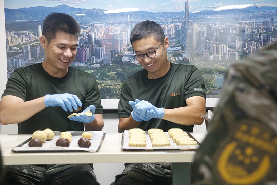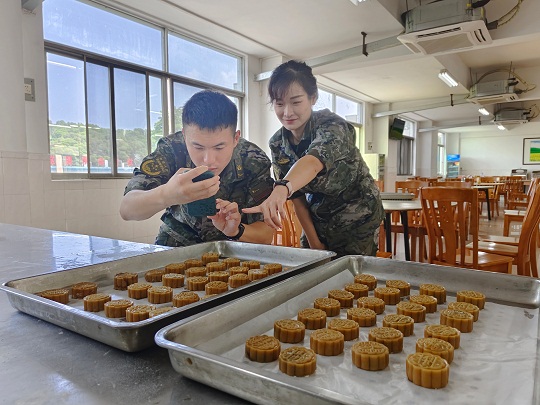 該局精心策劃相關(guān)事宜,提前定制特殊模具,指派專人指導(dǎo)月餅制作。為讓小小月餅吃出滿滿的“儀式感”,執(zhí)法員們將一抹抹鄉(xiāng)愁融進了月餅里,把一句句祝福包在了月餅中?!爸袊>薄ⅰ昂=l(wèi)士”、“不忘初心”、“絕對忠誠”……一個個獨具海警特色的月餅記錄了海警人的家國情懷。