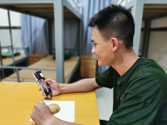 一封家書,一通電話,一個視頻,跨越了千山萬水,將祝福送給遠(yuǎn)方的親人。在中秋節(jié)到來前夕,平時忙于各種各樣工作任務(wù)的執(zhí)法員們不約而同地執(zhí)筆成信,拿起手機和家人打電話聊視頻,送上屬于自己的節(jié)日問候和祝福?!皨寢?,你看,這是我自己動手做的月餅,我已經(jīng)寄了兩盒回來,到時候你和爸爸嘗嘗,媽媽,中秋節(jié)我不在你們身邊,你和爸爸要照顧好身體?!痹摼肿钅贻p的00后執(zhí)法員鄭浩林,以這樣的方式向家里的父母送上節(jié)日問候。