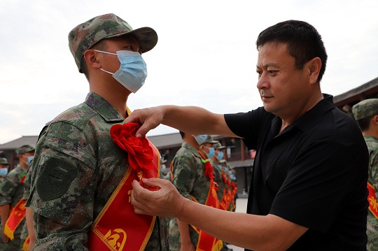 “今天家鄉(xiāng)領(lǐng)導(dǎo)和擁軍企業(yè)專門看望慰問我們即將入伍的新兵,讓我們倍感溫暖,也感受到了當(dāng)兵光榮……”新兵王作嶺身著嶄新軍裝,胸前佩戴著大紅花,內(nèi)心無比激動(dòng)。