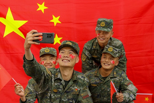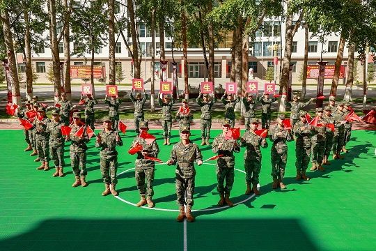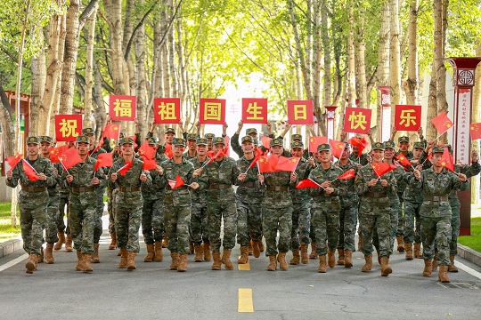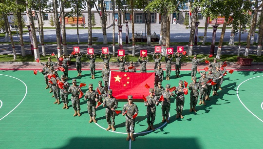 國慶前夕,武警青??傟犻_展“向祖國深情告白”主題活動,官兵們通過與國旗合影、組織升旗儀式等形式,向偉大祖國深情告白,祝福偉大祖國繁榮昌盛。圖為官兵揮舞國旗喜迎國慶。