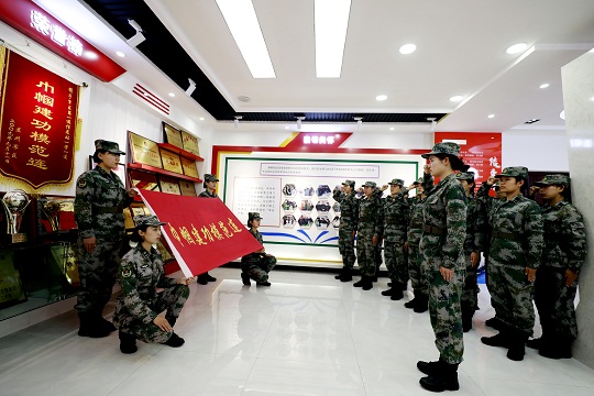 圖為話務連新兵觀賞連隊榮譽。王建英 攝