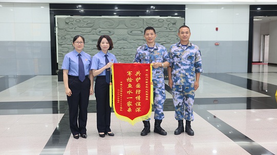 圖為某部感謝新會(huì)區(qū)檢察院民事支持起訴,向其贈(zèng)送錦旗。