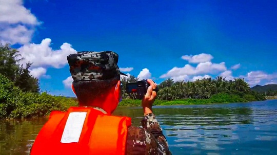圖為海南海警局執(zhí)法員對無居民海島組織旅游活動進行拍照取證。吳昊 攝