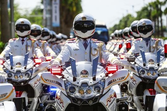 圖為2021年7月1日圓滿完成“七一勛章”頒授儀式摩托車護(hù)衛(wèi)任務(wù)。李響 攝