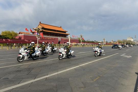 第二屆“一帶一路”國際合作高峰論壇在北京舉行時,多達(dá)37國領(lǐng)導(dǎo)人來訪出席。從首都國際機(jī)場專機(jī)樓到釣魚臺國賓館,從人民大會堂到雁棲湖國際會都,60余公里的護(hù)衛(wèi)路線上,他們對每一處路段、每一道橋梁都了然于心。箭陣式飛馳、雁陣式流動,任務(wù)中用最高禮節(jié)歡迎世界貴賓、展示大國氣象。行進(jìn)在外交前沿的護(hù)衛(wèi)隊員們,對我國全面推進(jìn)中國特色大國外交有著更為深切的體會。