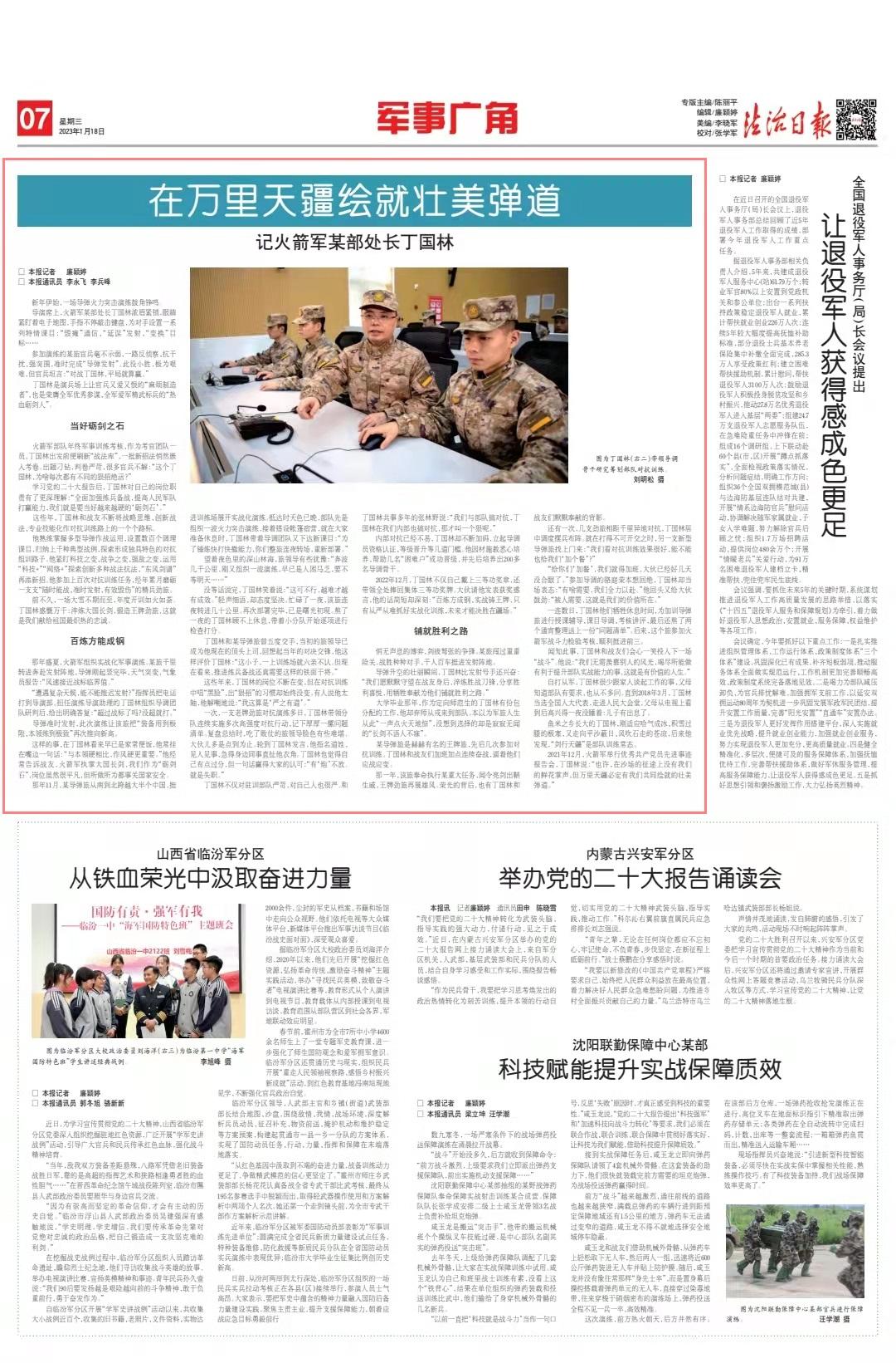 學(xué)習(xí)黨的二十大報告后,丁國林對自己的崗位職責(zé)有了更深理解:“全面加強練兵備戰(zhàn),提高人民軍隊打贏能力,我們就是要當(dāng)好越來越硬的‘礪劍石’?!?/p>