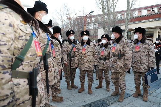圖為武警青??傟犝瘲钪緩姡ㄓ宜模└耙痪€檢查勤務(wù)、慰問官兵。