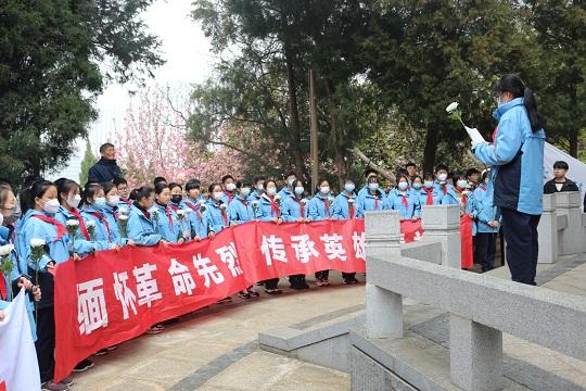 3月31日,南京市上元中學(xué)學(xué)生徒步近3公里來(lái)到仲銘橋頭仲銘亭前,祭掃鄧仲銘烈士碑。