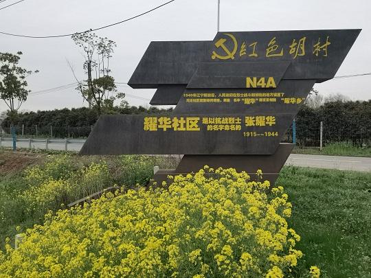 南京市江寧區(qū)是抗戰(zhàn)時(shí)期革命老區(qū)之一,在湯銅大道后湖村口,有座鋼鐵雕塑格外引人注目,上面寫著:“紅色湖村——1949年江寧解放后,人民政府在烈士戰(zhàn)斗和犧牲的地方設(shè)置了‘耀華鄉(xiāng)’,無(wú)論社區(qū)建制如何調(diào)整,英雄的名字‘耀華’都緊緊相連,耀華社區(qū)是以抗戰(zhàn)烈士張耀華的名字命名。”