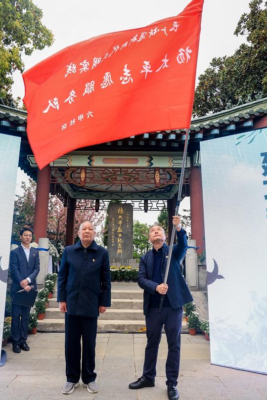 4月3日,在江蘇省南京市江北新區(qū)組織的清明祭英烈活動(dòng)中,楊太平烈士生前所在連老連長(zhǎng)何恩會(huì),為江北新區(qū)長(zhǎng)蘆街道六甲社區(qū)“楊太平志愿服務(wù)隊(duì)”授旗。
