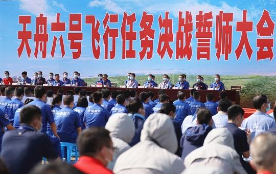 大會在雄壯激昂的國歌聲中拉開帷幕,在下達(dá)《天舟六號飛行任務(wù)決戰(zhàn)號令》后,各參試單位代表依次下戰(zhàn)書、表決心。